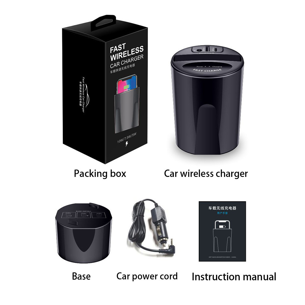 10W Car Wireless Charger Cup with USB Output for iPhoneXS MAX/XR/X/8 SAMSUNG Galaxy S9/S8/S7/S6/Note8/Note5 edge for PIXEL 3XL